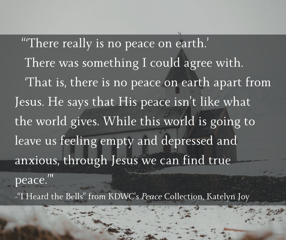 The King’s Daughters Writing Camp has recently published their Peace anthology, a collection of short stories, poems, and devotionals centered around the theme of peace. My short story, “I Heard the Bells,” is included in this collection! Here is a little bit more about Peace–